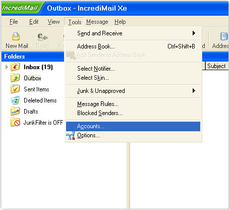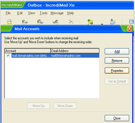 IncrediMail Xe mail programınızı açarak aşağıda gösterilen sekmeleri takip ediniz.