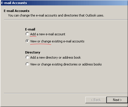 Kurulu hesabınız var ise bu aşamada Change (Değiştir) butonuna basınız. Yeni bir hesap kurulumu için Next butonuna basılmış ise bir sonraki aşamayı göreceksiniz.
